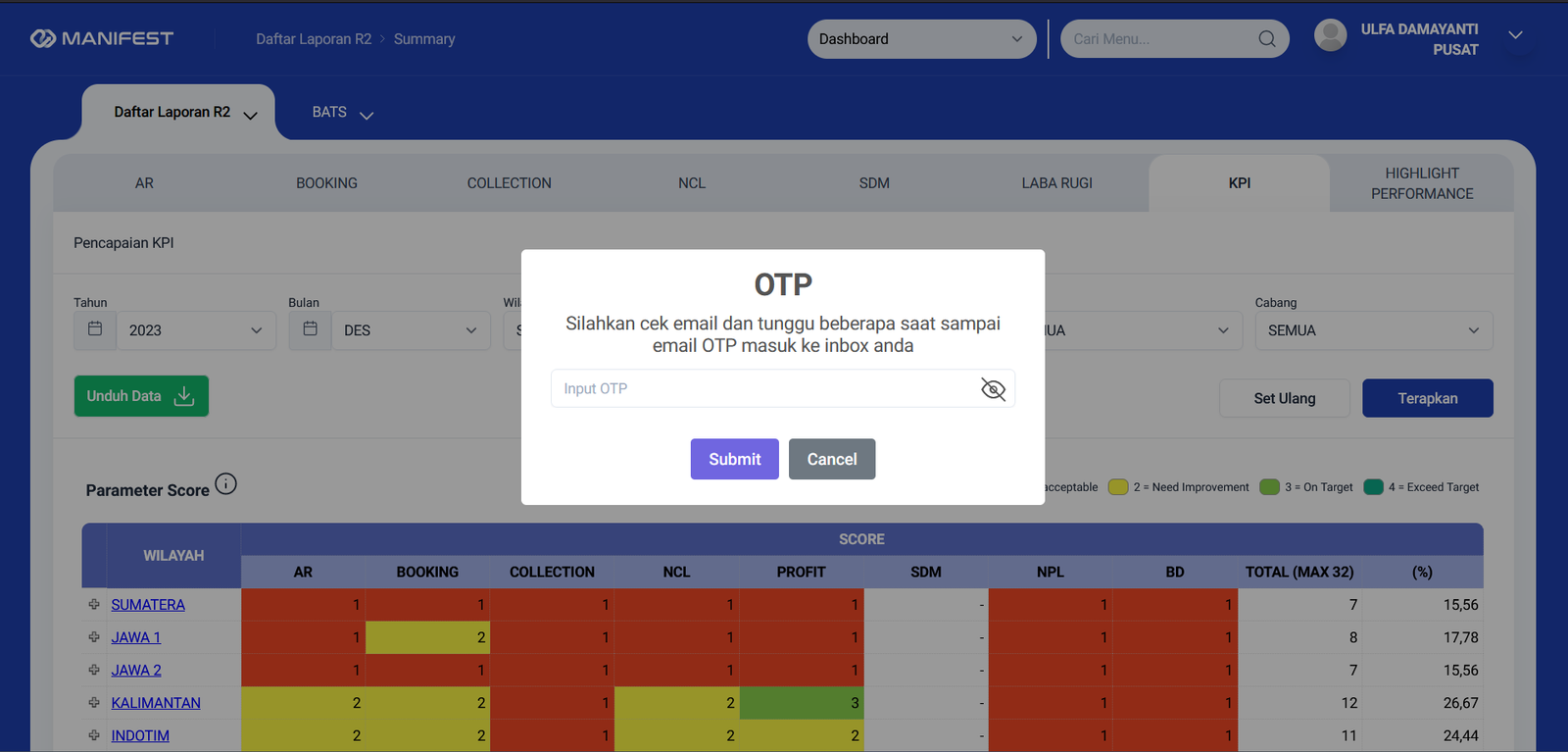 Manifest adalah sebuah sistem yang digunakan oleh divisi Business Intelligence untuk menganalisa data berdasarkan hasil data report yang bersifat aktual.