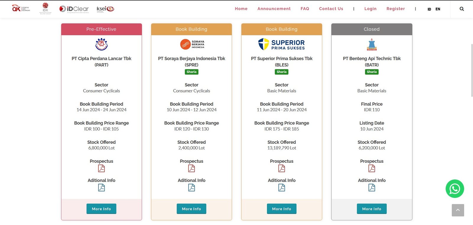 - Implementing the fullcalendar. js library for monitoring the schedule of a company preparing for an Initial Public Offering (IPO) on the Indonesia Stock Exchange (IDX).