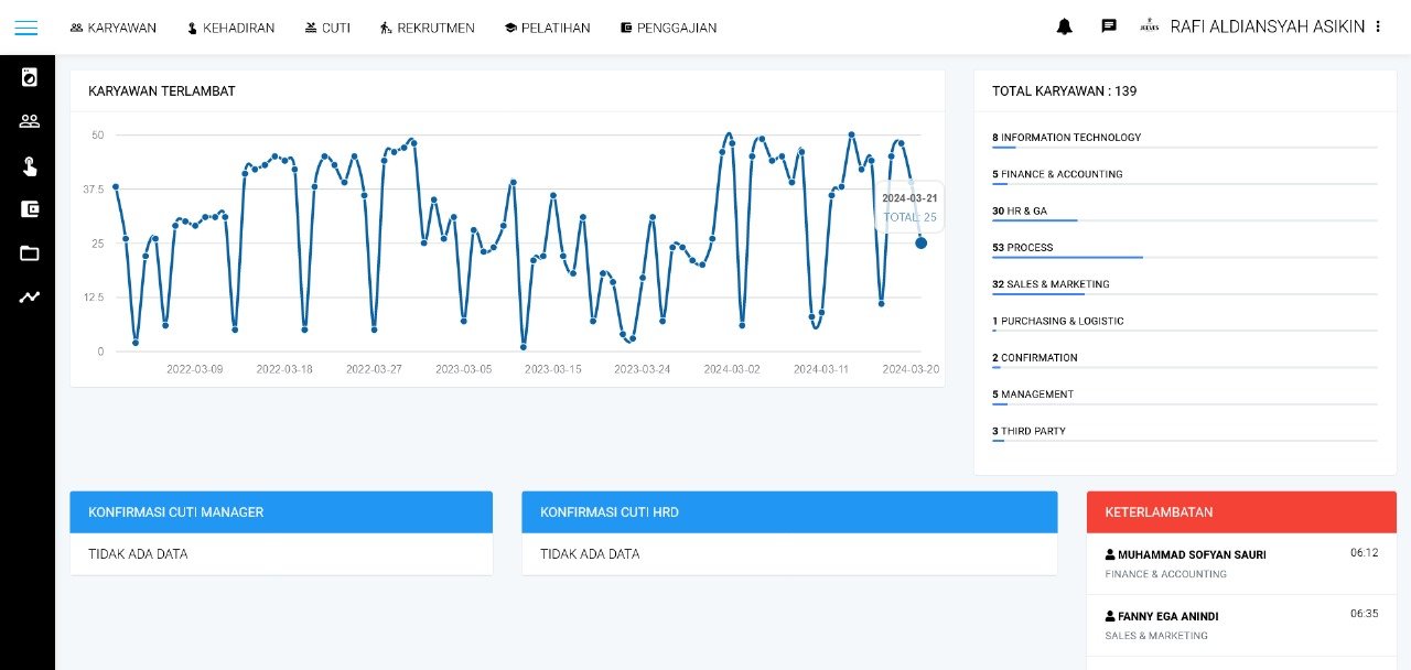 - Creating a Human Resource Information System (HRIS) application divided into two platform types: Mobile Apps with a Progressive Web Apps (PWA) concept for all employee and a Web-based application used by the HR departments administrative team.