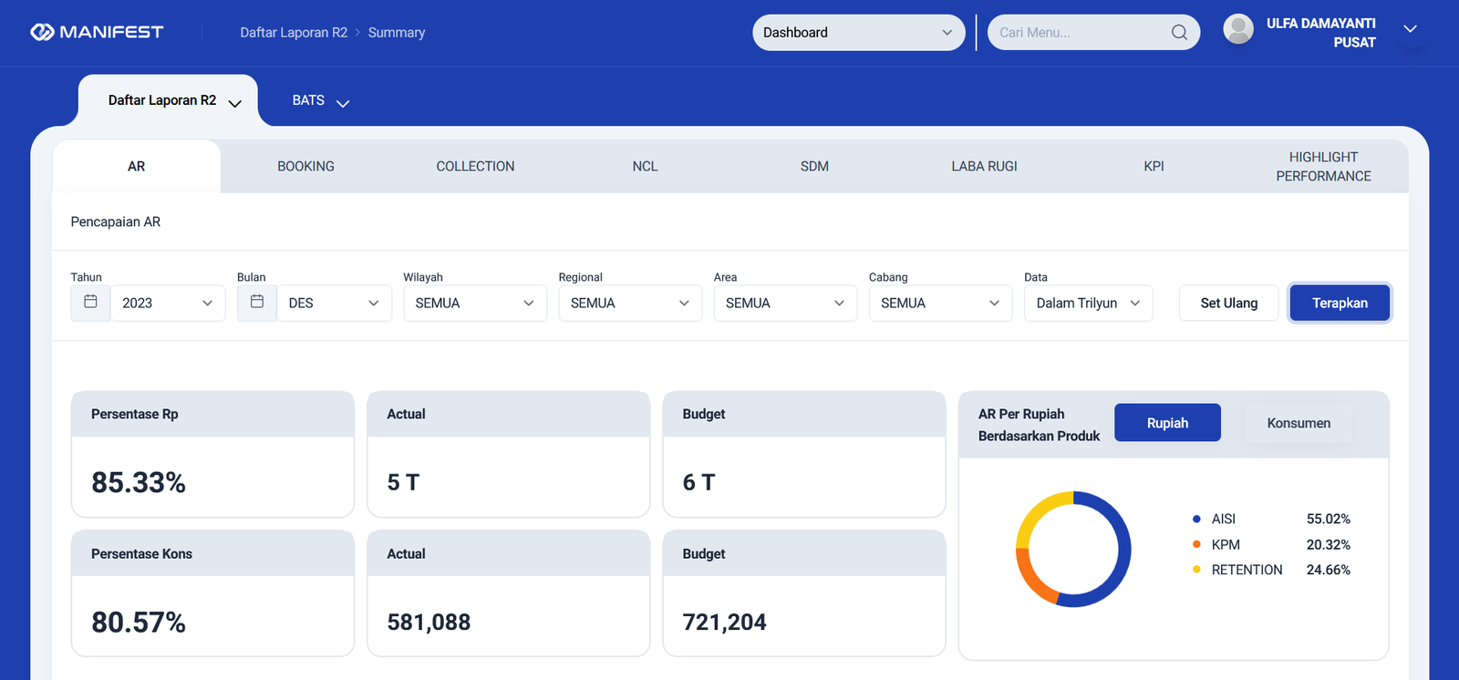 - Develop application Manifest (Mandala Intelligence Finance System) for Business Intelligence Department