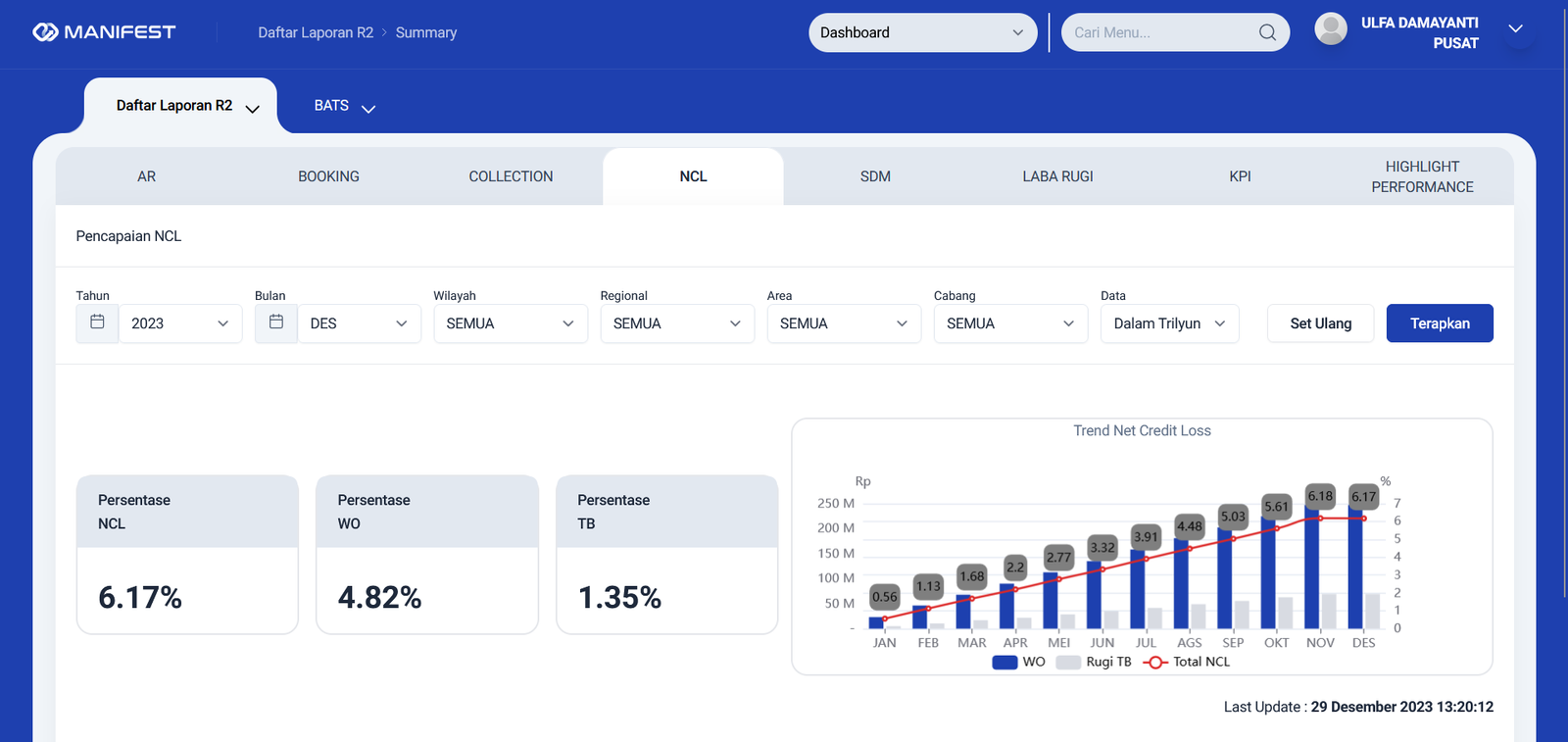 Manifest adalah sebuah sistem yang digunakan oleh divisi Business Intelligence untuk menganalisa data berdasarkan hasil data report yang bersifat aktual.